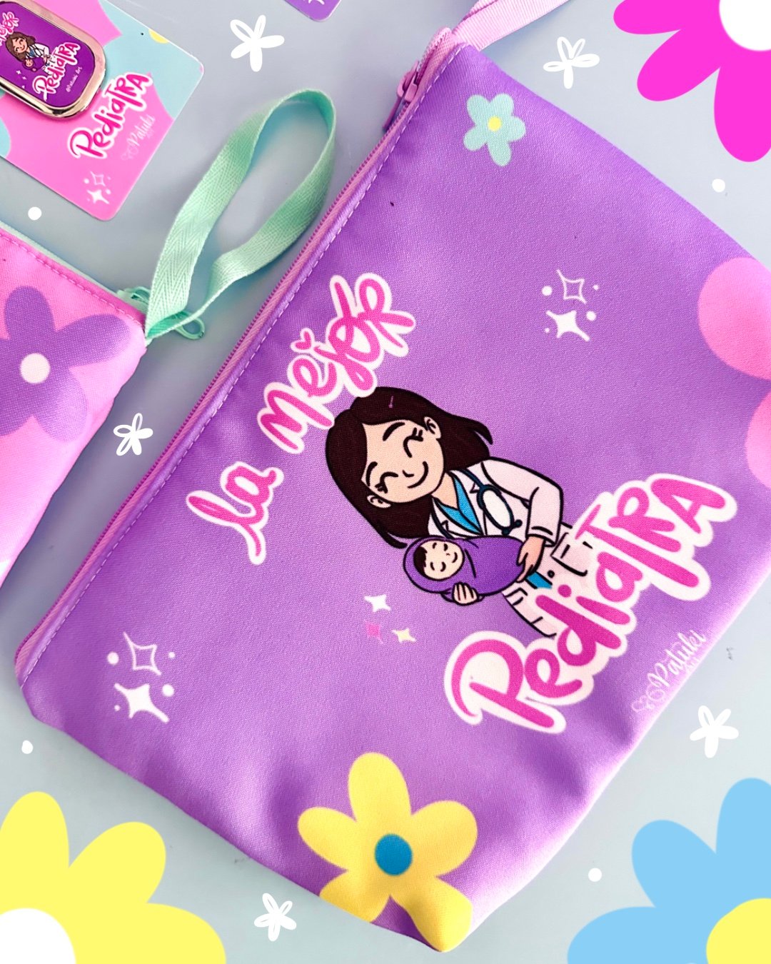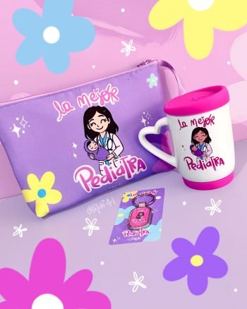 Kit de Pediatra; incluye: Organizador en Lino Flex, mug en cerámica con tapa de silicona y llavero métalico.