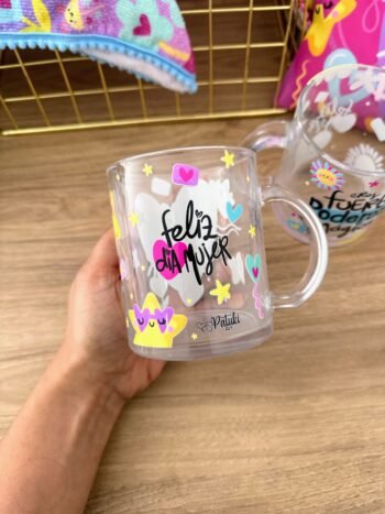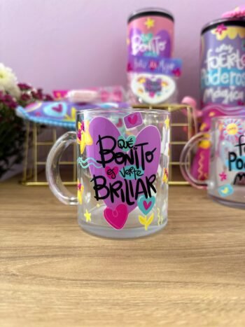 Mug en vidrio transparente, estampado con DTF UV.
