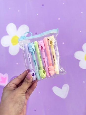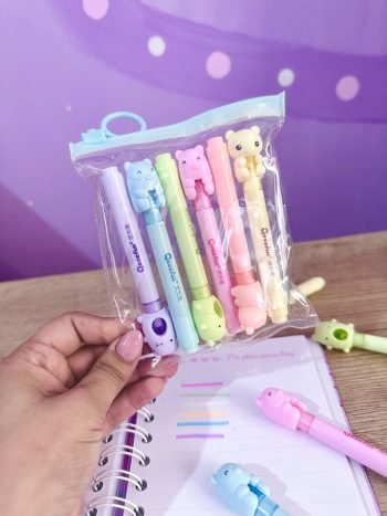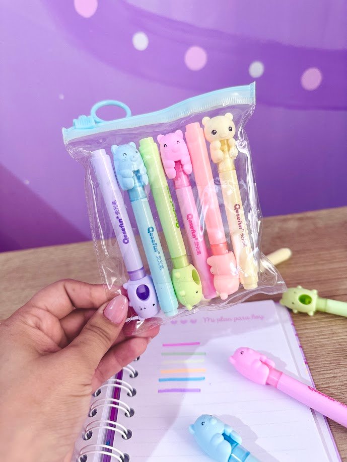 Set de resaltadores con adorables diseños de animalitos, perfectos para estudiar con estilo. Paquete x 6 colores surtidos.