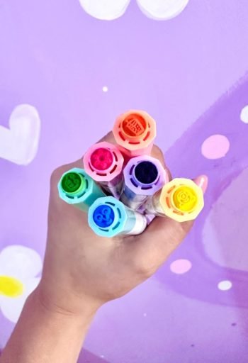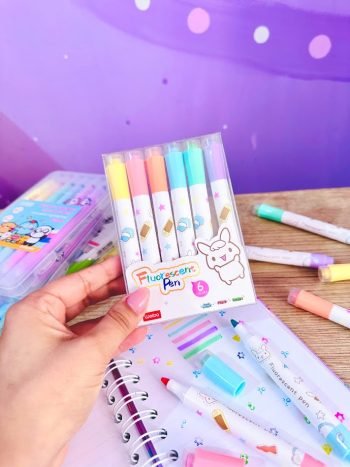 Resaltadores fluorescentes con sellos, paquete x 6 colores surtidos.