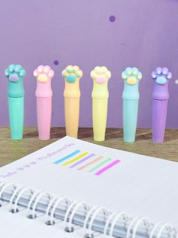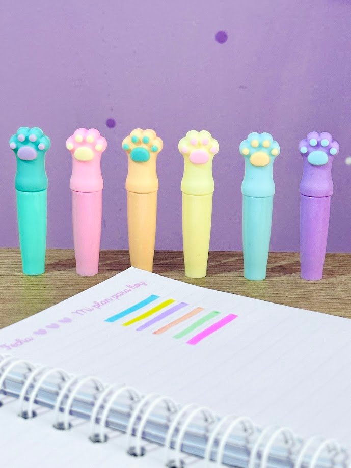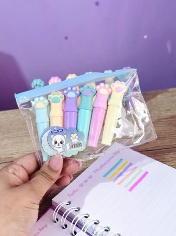Tiernos resaltadores con diseño de huellitas, paquete x 6 colores surtidos.